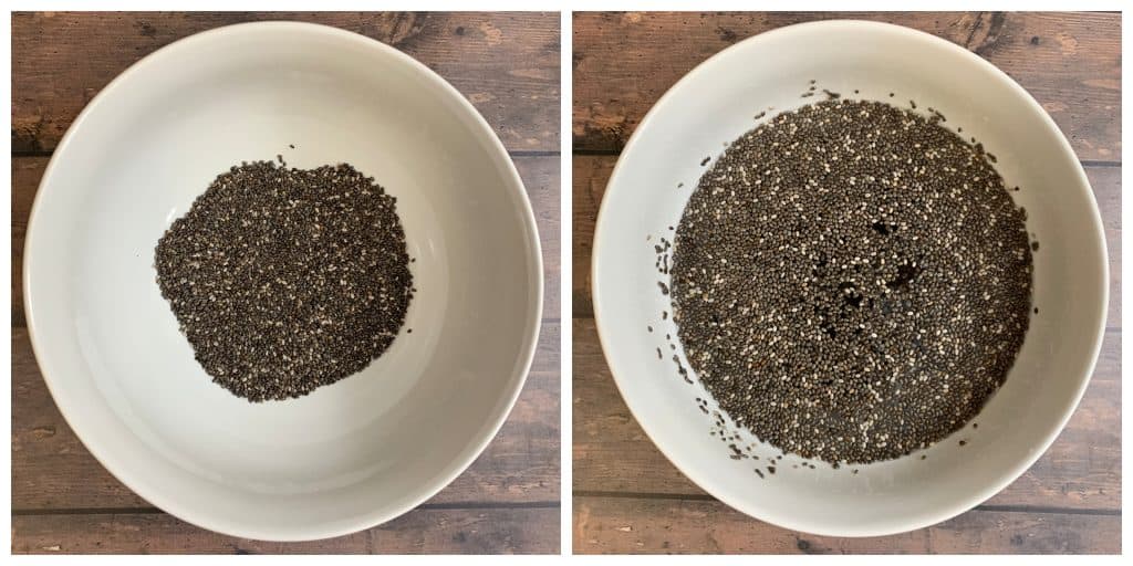 2 चमचे चिया सिड्स फुलण्यासाठी1 कप पाण्यात कमीत कमी 1-2 तास ठेवावे किंवा गरम पाण्यात 30 मिनिटांसाठी ठेवावे.
