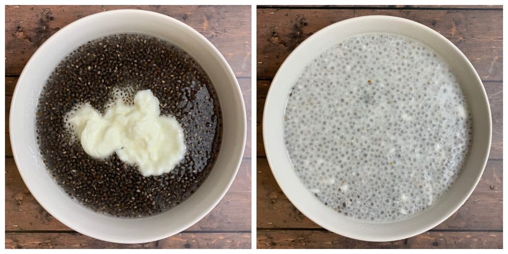 एकदा चिया सिड्स बुडबुडे झाल्यावर दही, मीठ घालून एकत्र मिसळुन घ्या.