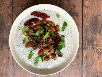 वरील चियाच्या मिश्रणात बनवलेला तडका घालून घ्या व त्यात वरून चिरलेली कोथिंबीर आणि क्रीम (Optional) घालुन थंड करून खायला घ्या