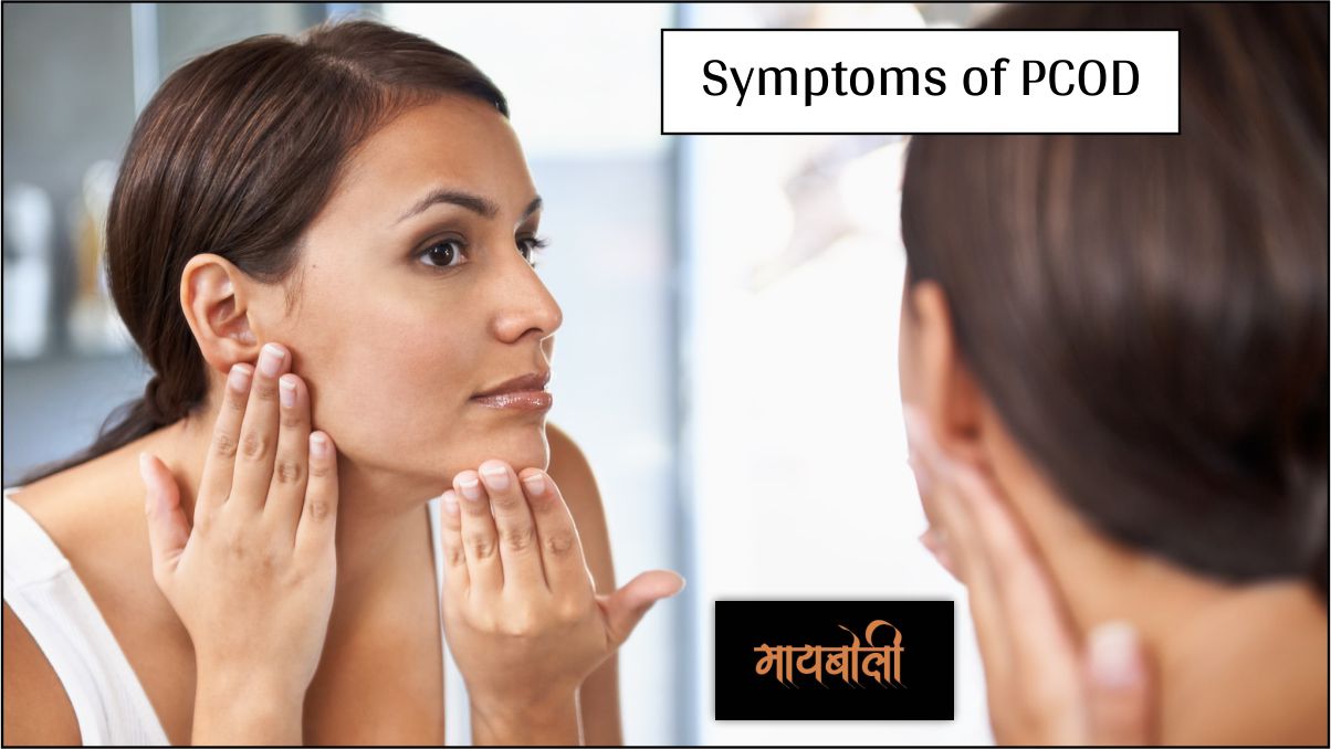 पीसीओडी मासिक पाळीमध्ये व्यत्यय आणू शकते, ज्यामुळे पुरुष हार्मोन अँड्रॉजन ची पातळी वाढते व मुरुम, त्वचेवर केसांची वाढ, वजन वाढणे आणि त्वचेवर गडद रंगाचे पॅच दिसतात ही PCOD ची सामान्य लक्षणे आहेत.
